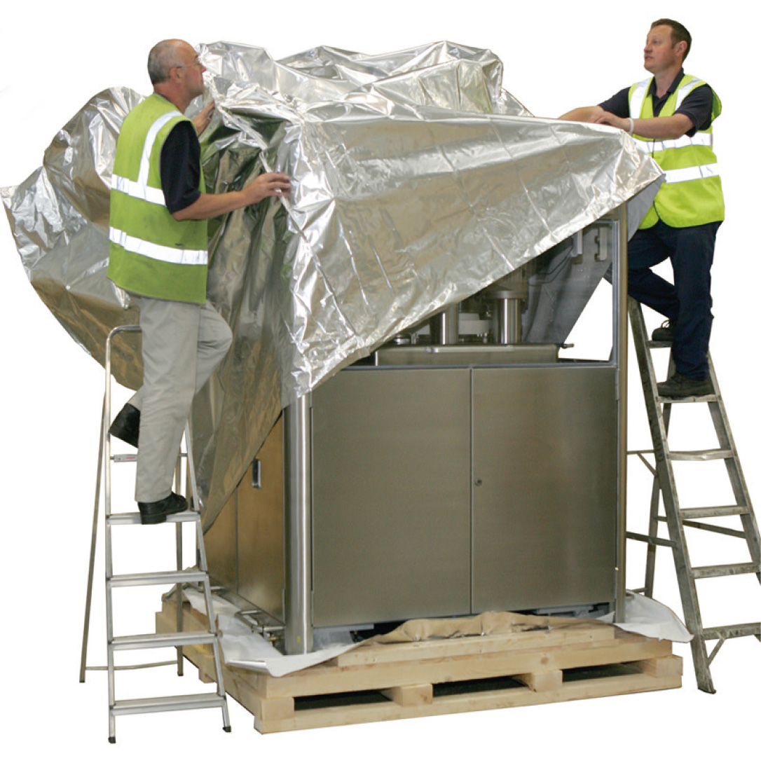 - Beskytter sårbare metalldeler og elektronikk mot fuktighet, korrosjon og forurensning under lagring og transport.