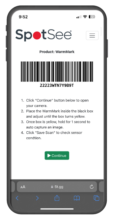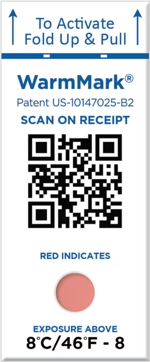 WarmMark hjelper deg å kontrollere din kjøletransport, ved å identifisere feilbehandling og sikre en transport som er innenfor de gitte temperaturkrav. WarmMark kommer i et bredt spekter av grenseverdier, med indikasjon for både korte og lange temperaturoverskridelser. Ved at QR koden scannes i hvert ledd av transportkjeden, har man sporbarhet og kontroll på eventuelle brudd på temperaturgrensen. Når en forsendelse blir utsatt for temperaturer over grenseverdien utløses en kjemisk reaksjon i enheten som gjør at den endrer farge fra hvit til rød. WarmMark QR er enkel i bruk, og krever ingen egen app.